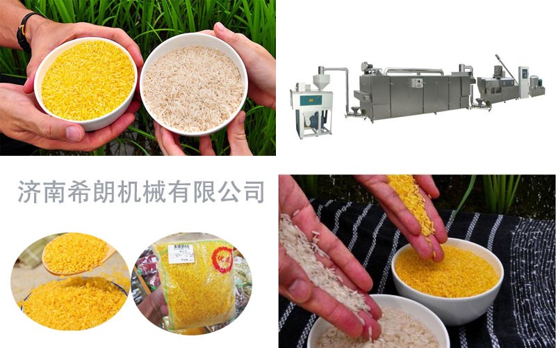 营养米是以五谷杂粮为主要原料经过挤出机把原料熟化制成规则的大米形状,原料添加各种微量元素和保健型中药材达到营养保健的使用效果。