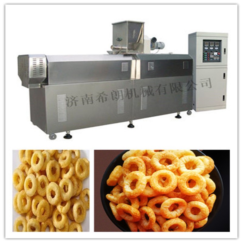 生产线采用先进的双螺杆螺旋式挤压技术将各种不同口味的原料经拌粉机混合后在膨化机挤出各种形状的产品,该生产线具有机型多、配置灵活、原料范围广、产品种类多、操作简单等特点。