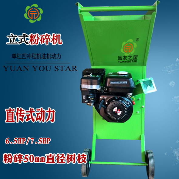 立式机身设计,放置占用空间小,7.5马力可以粉碎直径5公分以内的树枝