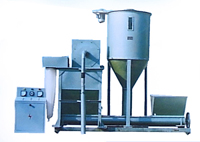 一、用途、结构和特点9SJ-1250型饲料加工机组是时产1250公斤配合饲料的设备。适用于畜禽养殖场和小型饲料加工厂。本机主要由锤片式粉碎机、吸料管、谷料仓、水平搅龙、立式混合机、副料仓组成。本机组具