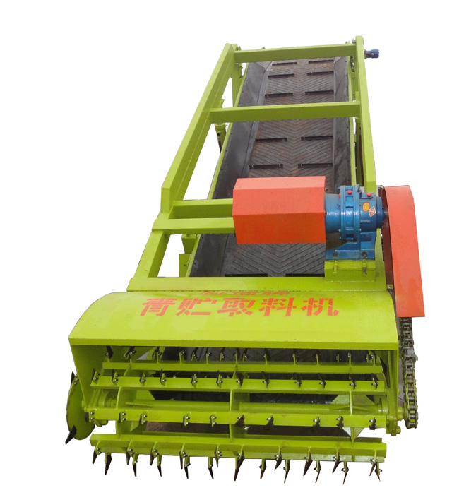 本机器适用于牛场或养牛小区青贮坑青贮饲料的装取。 *该机器共有两个电机,分别为以下四部分提供动力:取料滚筒,液压源动力,输送链条动力,机器行走动力。 *该机器有一组分配阀组。