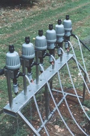 将比例施肥泵安装在供水管路中(串联或并联),利用管路中水流的压力工作原理