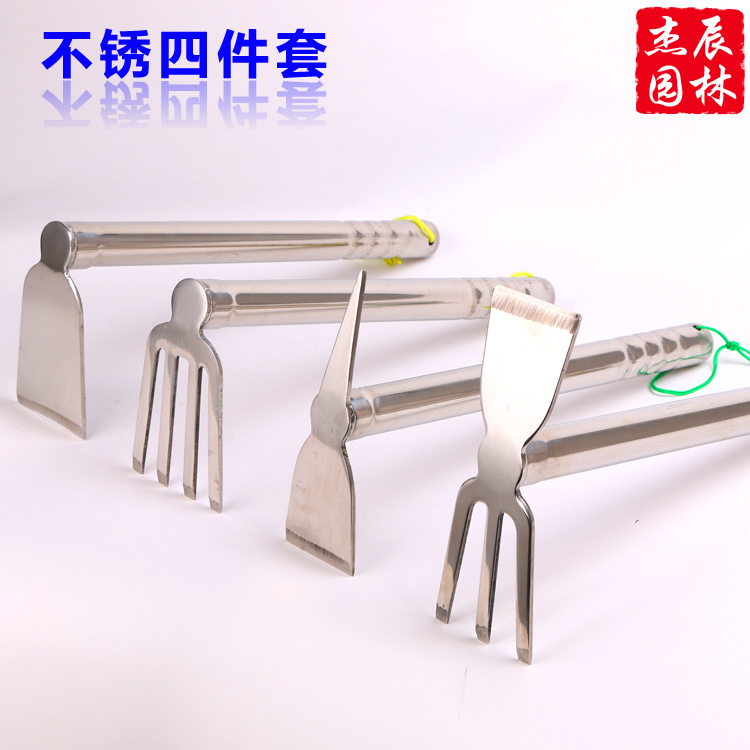 四款精品纯不锈钢庭院种菜种花不锈钢两用锄头 钉耙锄铲子户外