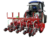气吸式播种,定位定量,一次一粒,省人工间苗成本; 集旋耕、起垄、滴灌、气吸播种、实时监控于一体; 行距可调,行数可选; 搭载株距调节变速箱,使株距调节更精准